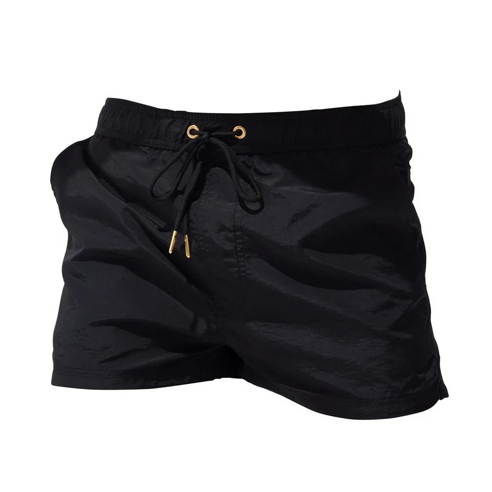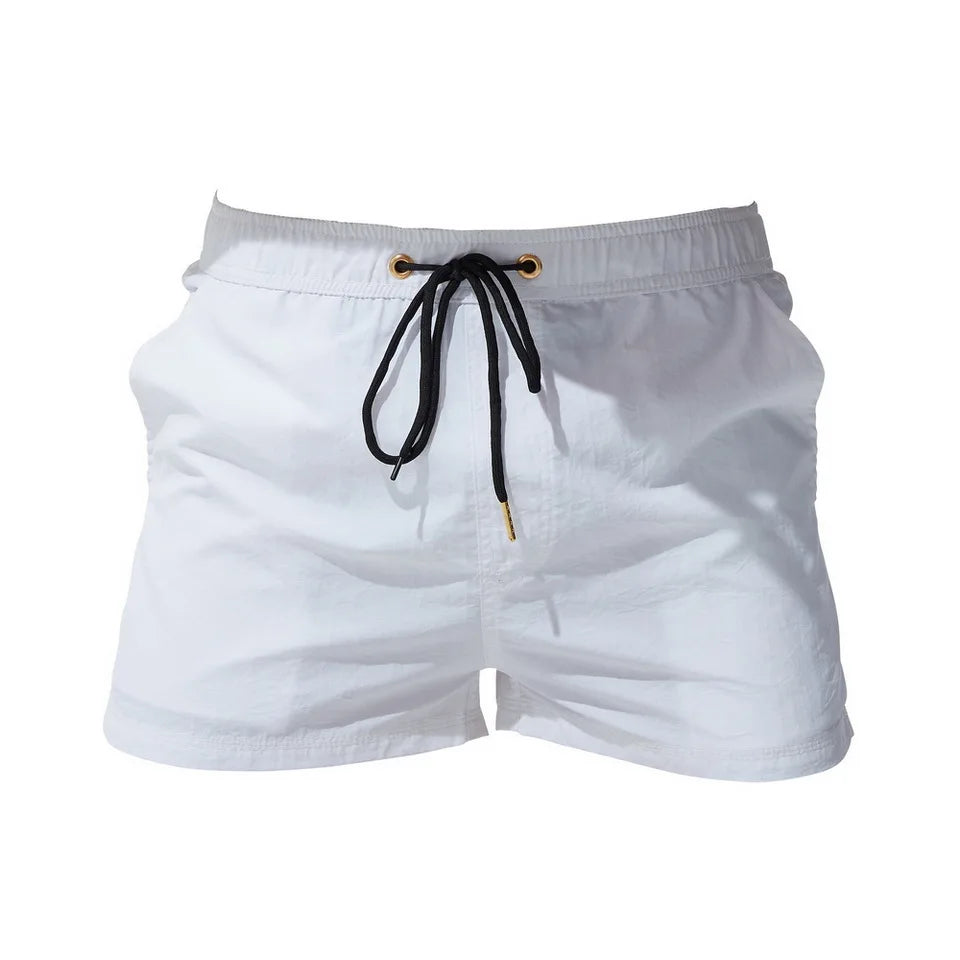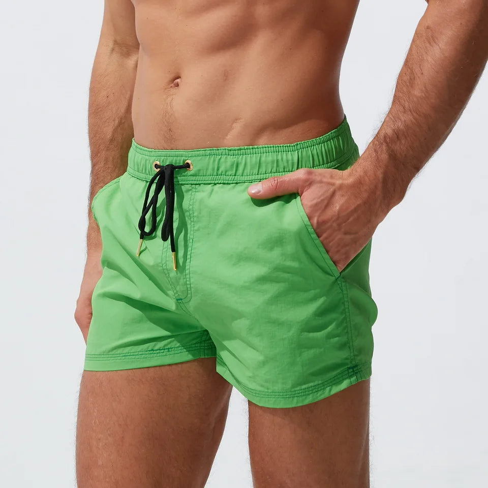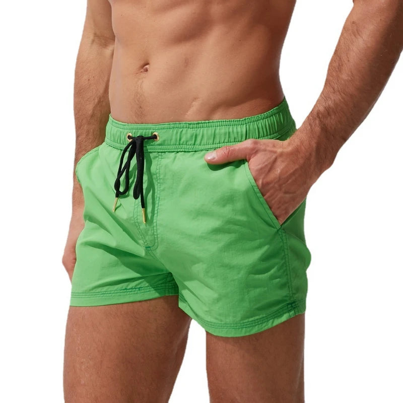 Men's Board Shorts: Breathable Solid Drawstring Swimming Trunks for Summer Beach & Outdoor Activities